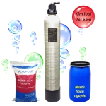 Thể tích vật liệu lọc Hạt nhựa Resin: 20 lít (tuổi thọ 02 năm),muối tinh 25kg