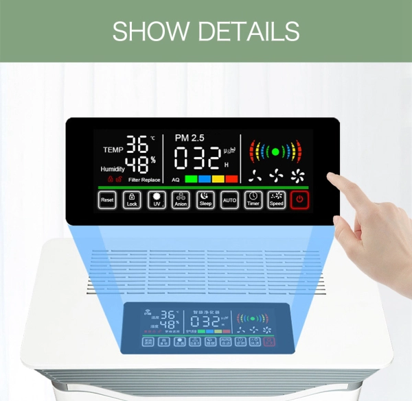 Các giai đoạn lọc: Bộ lọc trước PP + HEPA + Bộ lọc carbon + Quang xúc tác + Đèn UV + Chất xúc tác lạnh + Anion