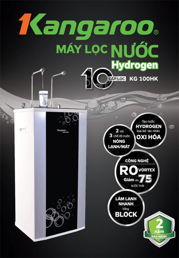 Máy lọc nước Kangaroo Hydrogen 2 vòi – 3 chế độ NÓNG-LẠNH-MÁT KG100HK là 1 trong những dòng sản phẩm hiện đại nhất hiện nay của Kangaroo với nhiều tính năng ưu việt đã tạo ra bước đột phá trong công nghệ xử lý nước sạch uống tại vòi ở Việt Nam.