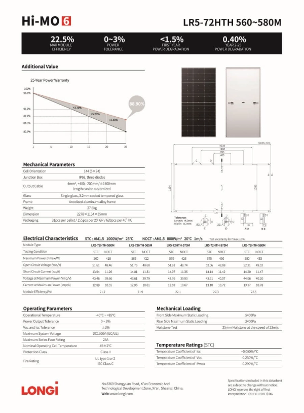 Đặc điểm nổi bật tấm pin năng lượng mặt trời LONGi 580W